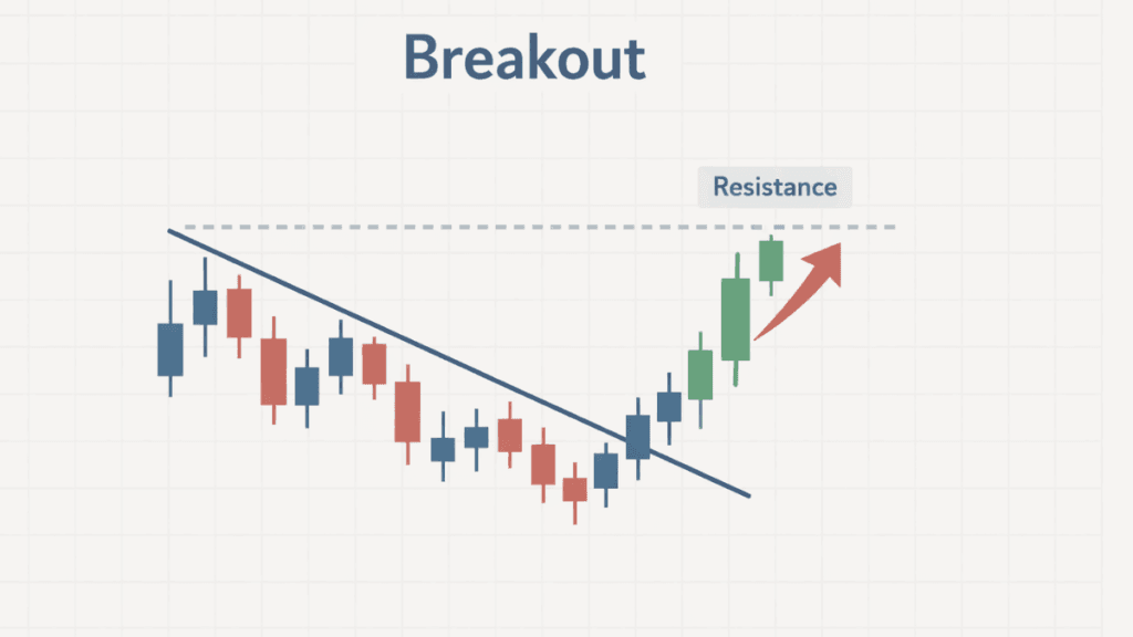 Breakouts can also occur from trendlines or price channels. When price breaks above a descending trendline or below an ascending one, it may signal a trend change.