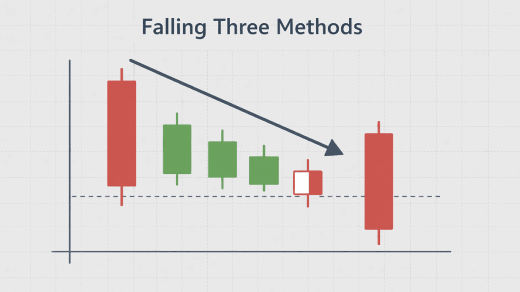 The Falling Three Methods is a powerful candlestick pattern for traders who want to understand trend continuation more clearly. It highlights how temporary pauses can strengthen, rather than weaken, a bearish move.